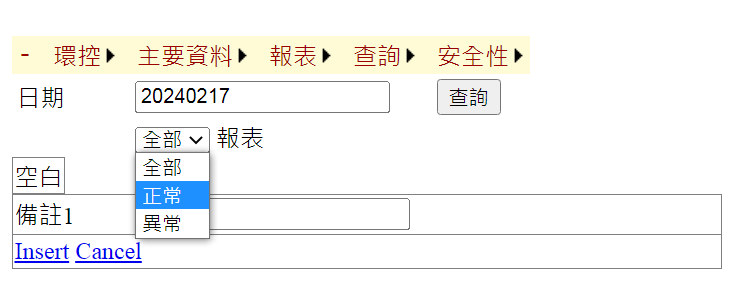 <figure><img src="https://1355107920-files.gitbook.io/~/files/v0/b/gitbook-x-prod.appspot.com/o/spaces%2F-M4WntSDerAW9prP4h8f%2Fuploads%2Fl3aAi6WeDaBo18nSrZBT%2F20240217.png?alt=media&#x26;token=5e831d34-2554-48f2-845f-7d6ffff3594f" alt=""><figcaption><p>除了可依日期選取外，亦可挑選正常報表或異常報表</p></figcaption></figure>